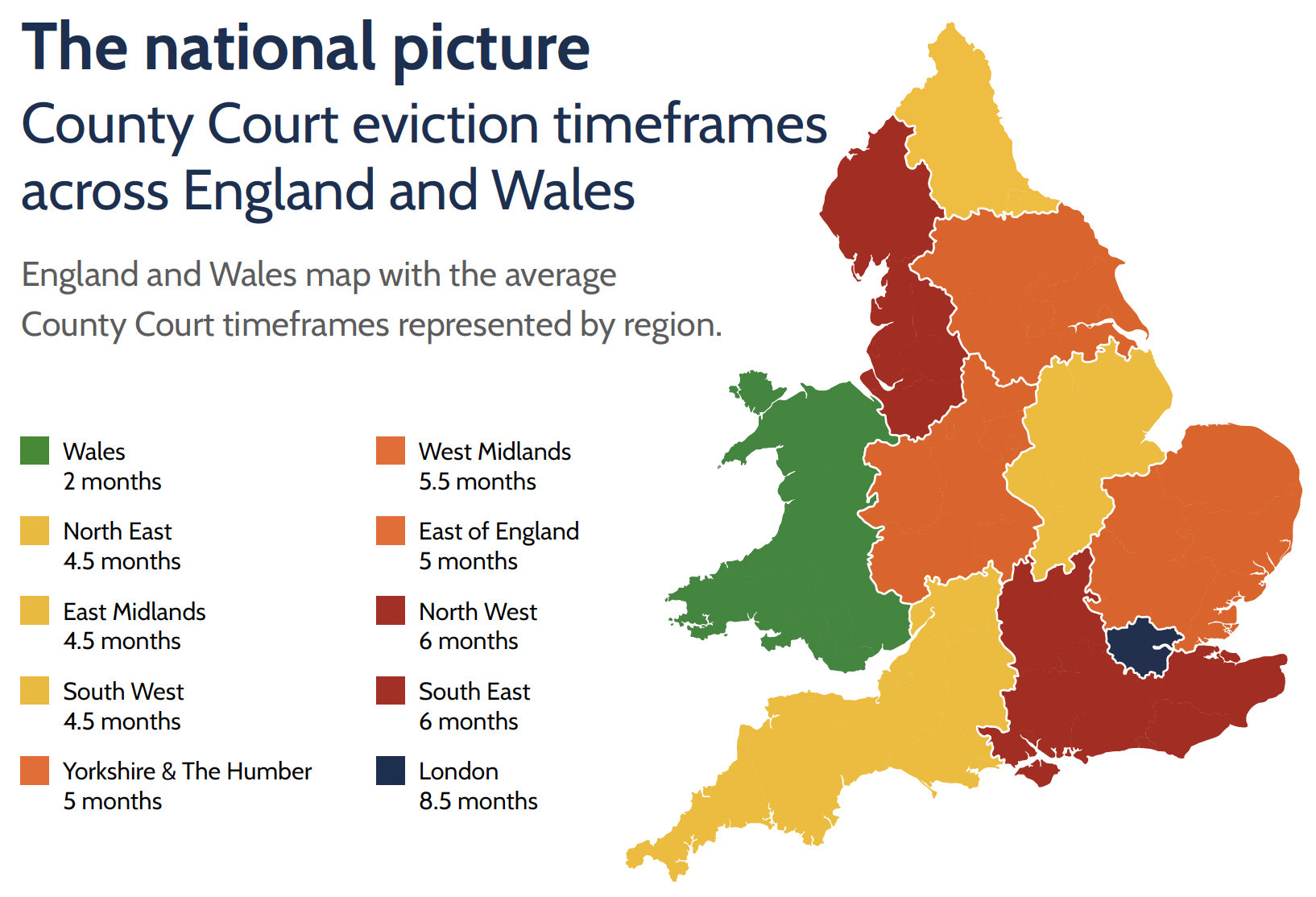 - 8 months – London average waiting time for an eviction in the County Court after a judge has ruled the tenant should be evicted