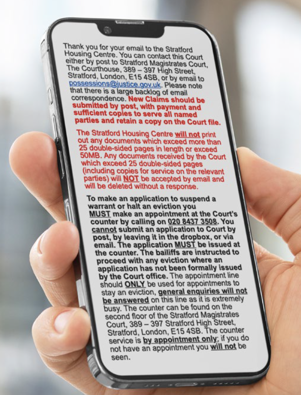 - Local authorities and social housing providers are spending valuable time and resources chasing up County Courts to try and secure eviction dates